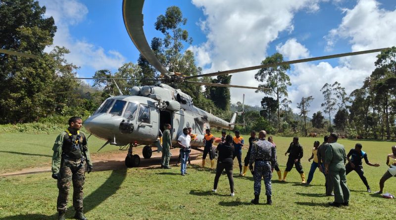 Indian Air Force (IAF) M17 helicopters continue rescue and relief operations yesterday (04) in flood-hit, inaccessible areas in central highlands of Sri Lanka. IAF helicopters airlifted 6.3 tonnes of relief material and evacuated 24 survivors to safe locations yesterday (04), including a pregnant woman.